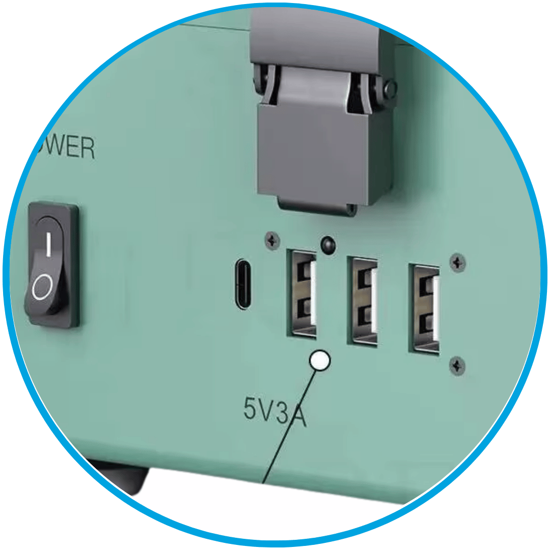 Easy filter installation and replacement, with fast 5V 3A charging and multiple USB ports for added convenience.