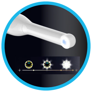 Its tip is accompanied by 8 LED lights, which have 3 levels of intensity adjustment, illuminating the darkest cavities.